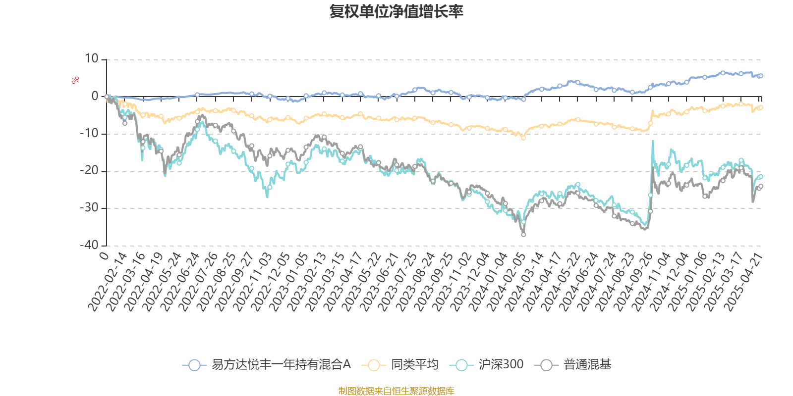 截至4月21日配资是做什么的,易方达悦丰一年持有混合A近三个月复权单位净值增长率为0.04%,位于同类可比基金406/670;近半年复权单位净值增长率为2.12%,位于同类可比基金217/670;近一年复权单位净值增长率为2.61%,位于同类可比基金471/668;近三年复权单位净值增长率为6.11%,位于同类可比基金273/563。