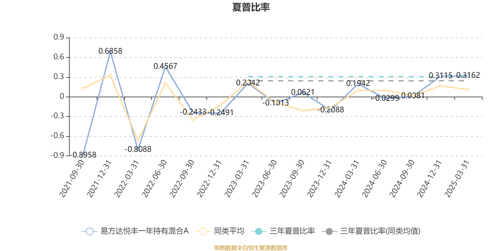 截至3月31日,基金近三年夏普比率为0.3059,位于同类可比基金253/545。