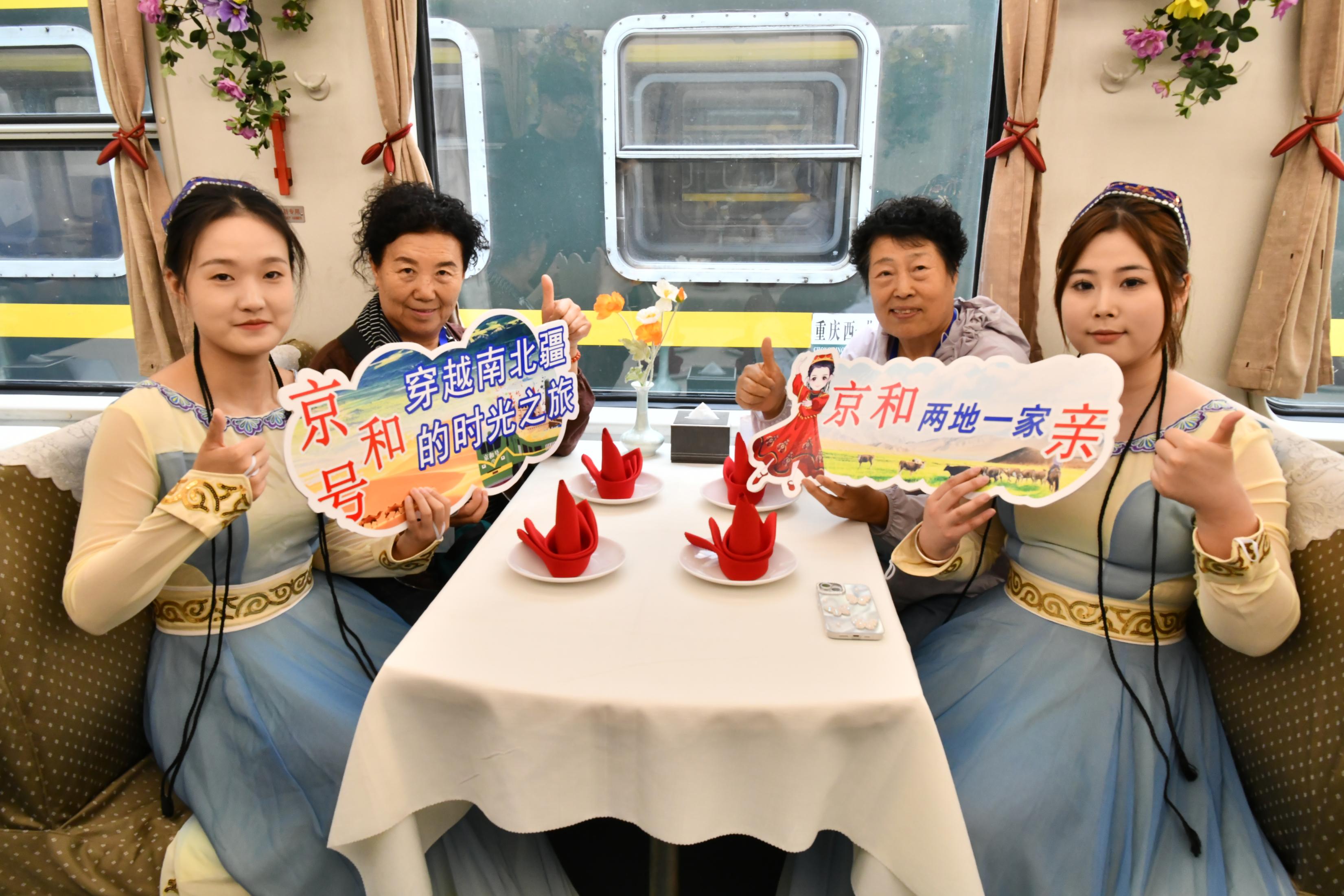 这是今年开行的第二趟“京和号”旅游专列。中铁旅集团相关负责人介绍,本趟旅游专列行程横跨甘肃、新疆、青海三省区,沿途覆盖6处国家5A级景区和7处4A级景区。行程特别融入了新疆特色美食体验,从羊肉串、大盘鸡到九碗三行子,游客可一站式品味地道风味,感受“舌尖上的丝路”。